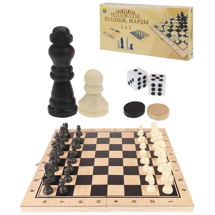 Игровой набор «Шахматы, нарды, шашки 3 в 1» от ТМ «Рыжий кот» предназначен как для детей в возрасте от 6 лет, так и для взрослых.