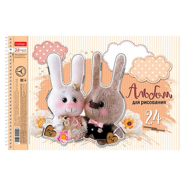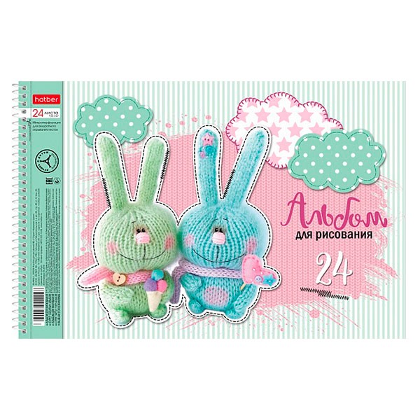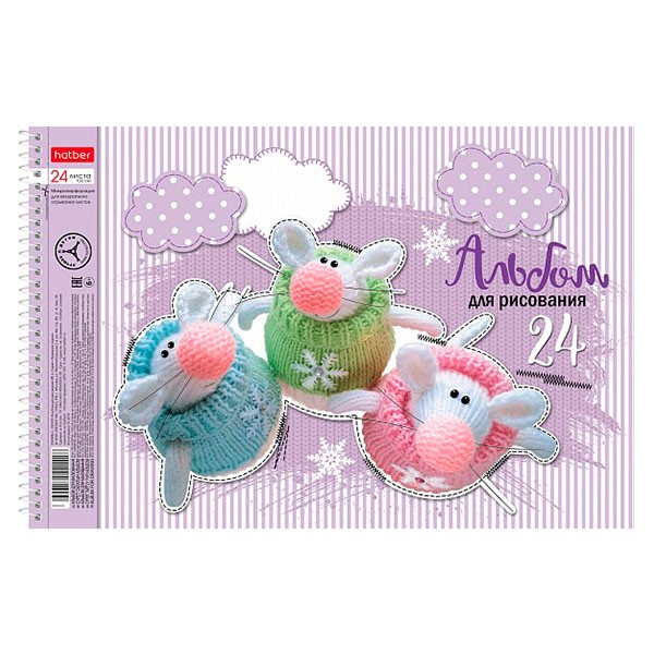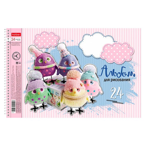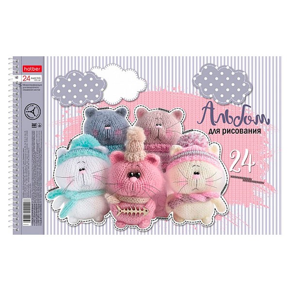 Альбом для рисования 24 л спираль Мягкие и пушистые (5 диз.) HATBER