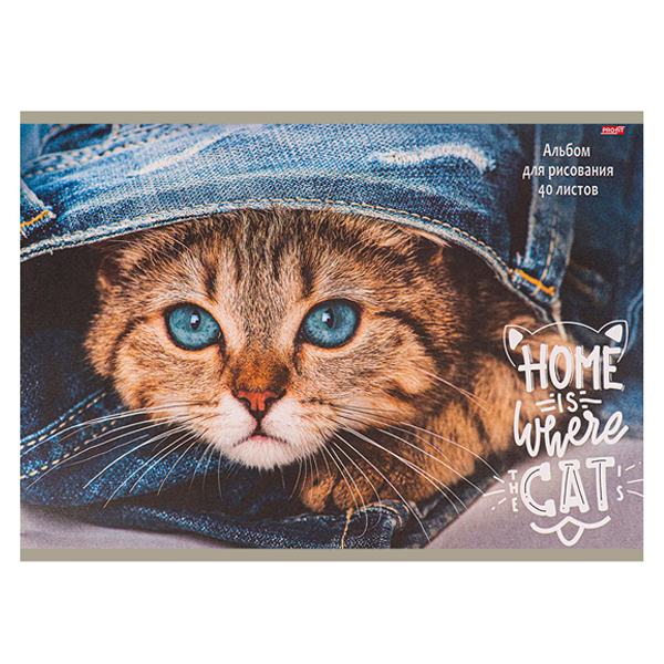 Альбом для рисования 40 л. Котик и джинсы ПРОФ-ПРЕСС 40-1496 45 шт/уп