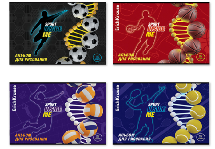 Альбом д/рисования, 12 листов на скобе обл. картон мел. “Sport DNA” ассор. (4 дизайна)