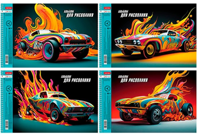 Альбом д/рисования 24 л. на спирали обл. картон с тиснением фольгой “Динамичные авто” ассор.