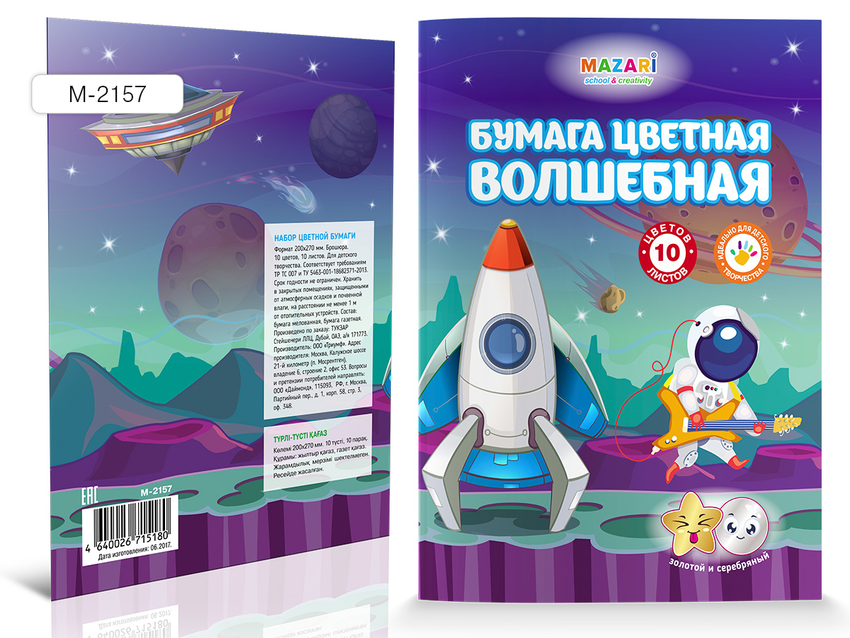 Бумага цветная 10 л. 10 цв. Односторонняя Волш. шляпа ( золот. и сереб. лист ) 50 шт/уп М-16197