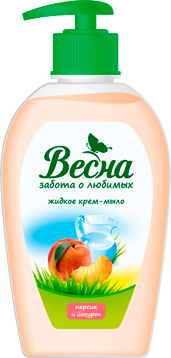 Жидкое мыло Весна Персик и йогурт на основе натуральных компонентов подходит для всей семьи.