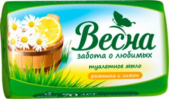 Классическое туалетное мыло Весна Ромашка и лимон содержит натуральные компоненты.