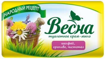 Мыло туалетное ВЕСНА Шалфей, крапива, чистотел не сушит кожу, бережно очищает ее и идеально подходит для всей семьи.