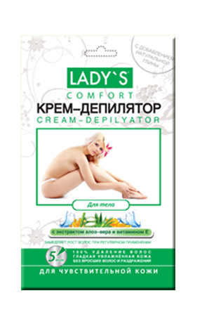 Lady`s крем-депилятор Для тела с экстрактом алоэ вера и витамином Е состоит на 80% натуральных ингредиентов.