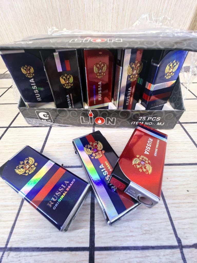 Зажигалка турбо Пьезо ГЕРБ РОССИИ ,можно заправлять 25 шт/уп