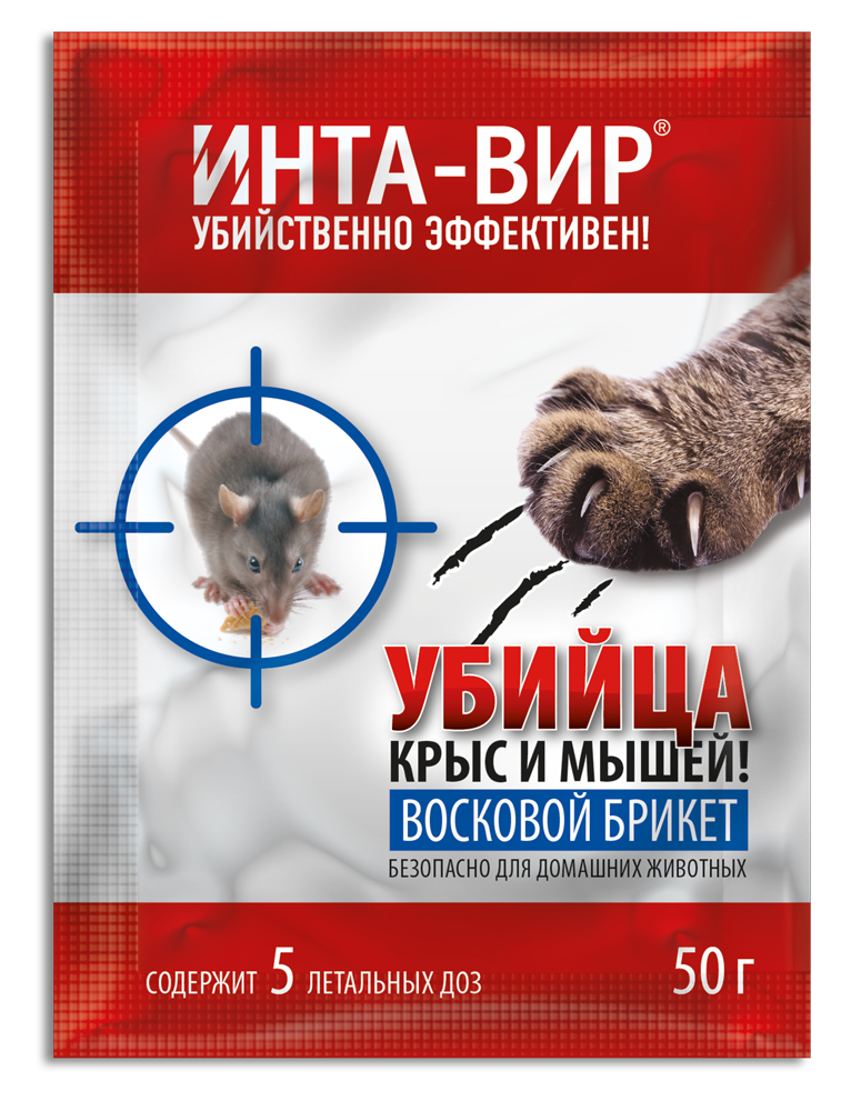 Инта-Вир восковой брикет 50 гр. от грызунов 100 шт/уп