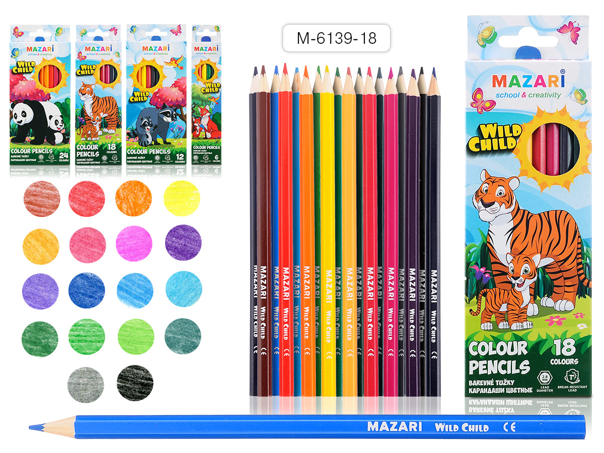 Карандаши цветные WILD CHILD, 18цв., шестигранный корпус, d грифеля=2,8 мм 80 шт/уп М-6139-18