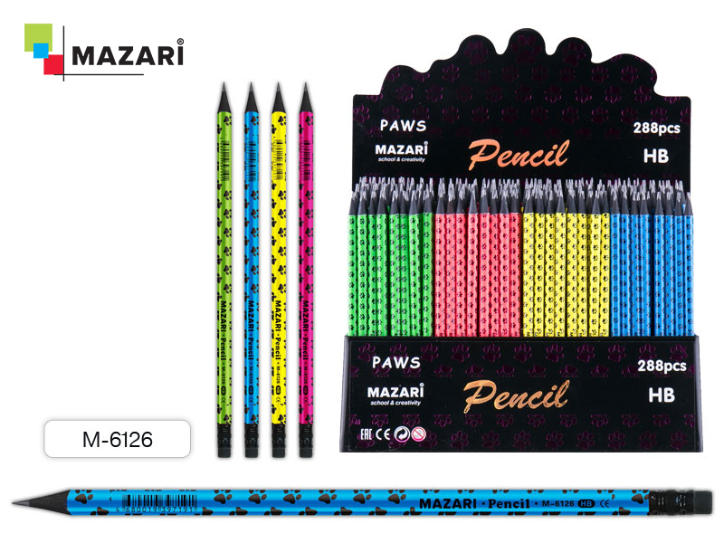 Карандаш чернографитный PAWS (черное дерево), HB, с ластиком 4 цв. 1152 шт/уп М-6126