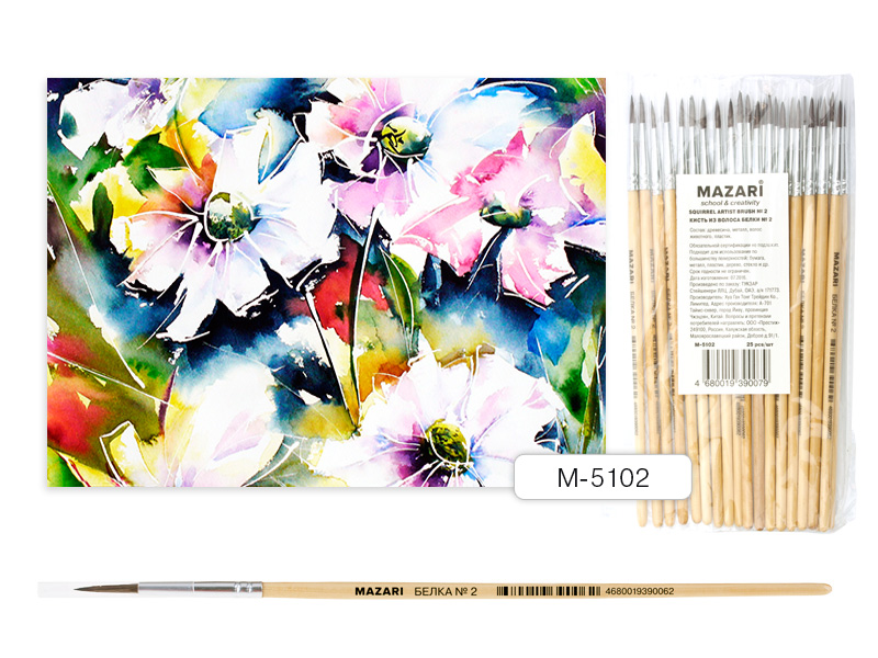 Кисть художественная, из волоса белка, №2, круглая, обойма обжимная, ручка дерев 500 шт/уп М-5102