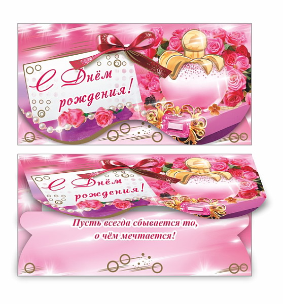 Конверт для денег жен.”С днем рождения”18*8,5 см10 шт/уп 00079