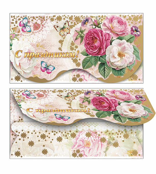 Конверт для денег жен.”С Праздником” 18*8,5 см10 шт/уп 00118