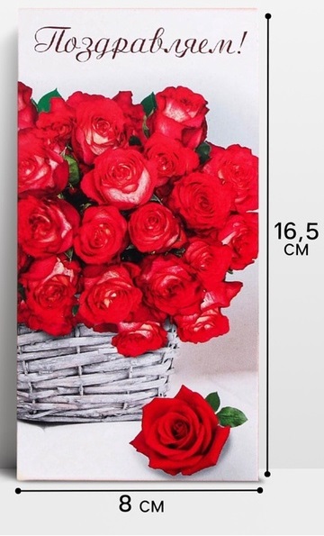 Конверт для денег «Поздравляем!», Красные розы, 16.5×8 см, 10 шт/уп, 4126354