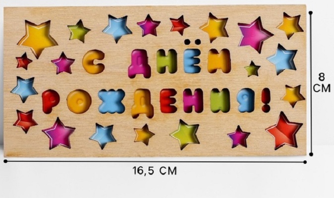 Конверт для денег с деревянным элементом “С Днём Рождения” звездочки, 16,5 х 8 см, 4948836