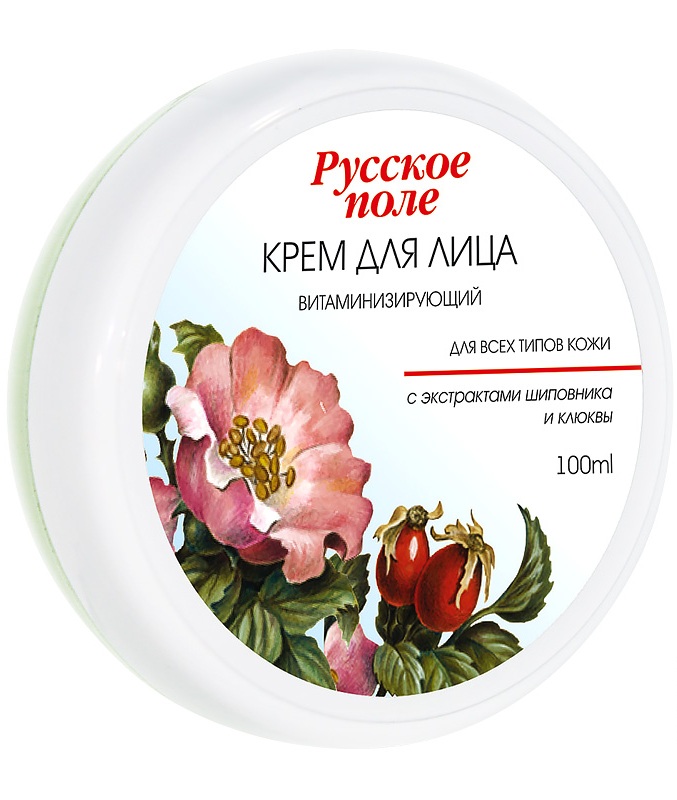 Крем для лица «Витаминизирующий» с экстрактами шиповника и клюквы серии «Русское поле».