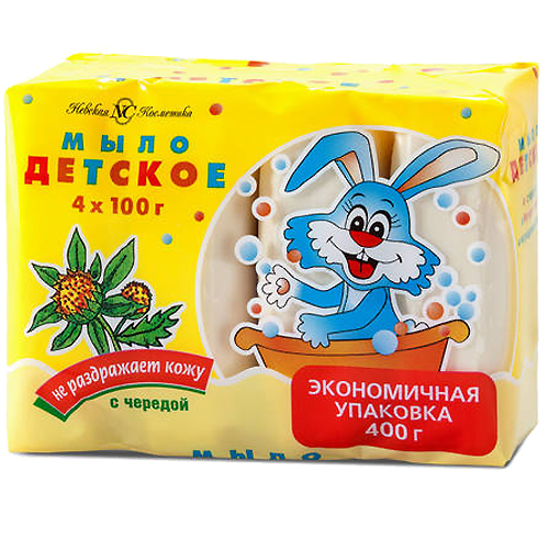 Классическое детское мыло создано на натуральной основе. Подходит для взрослых и детей любого возраста. В составе содержится норковый жир и глицерин, которые защищают чувствительную кожу и предохраняют её от обезжиривания, а также экстракт череды, который снимает воспаление и зуд, заживляет мелкие трещинки на коже. Мыло изготовлено из сырья высочайшего качества, не содержит красителей.