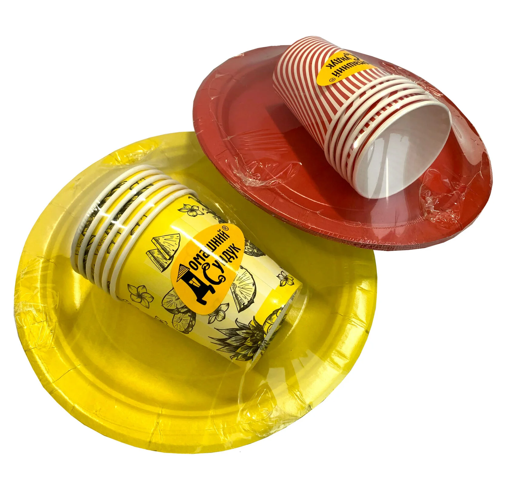 Набор Бумажной посуды Домашний сундук на 6 персон (тарелки, стаканы) 15 шт/уп ДС-357