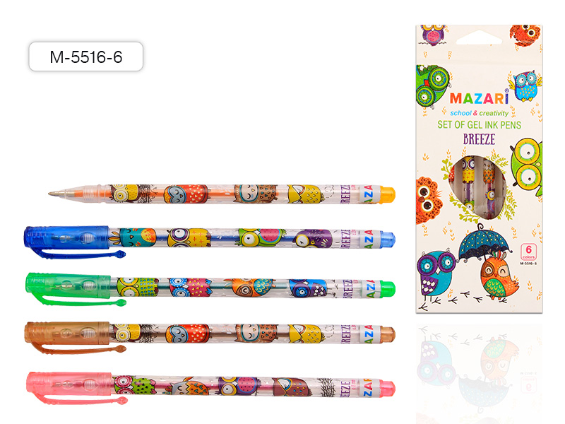 Набор ручек гелевых с блестками BREEZE, 6 цв., аром. чернила пул пиш.узел 0.8мм 120 шт/уп М-5516-6