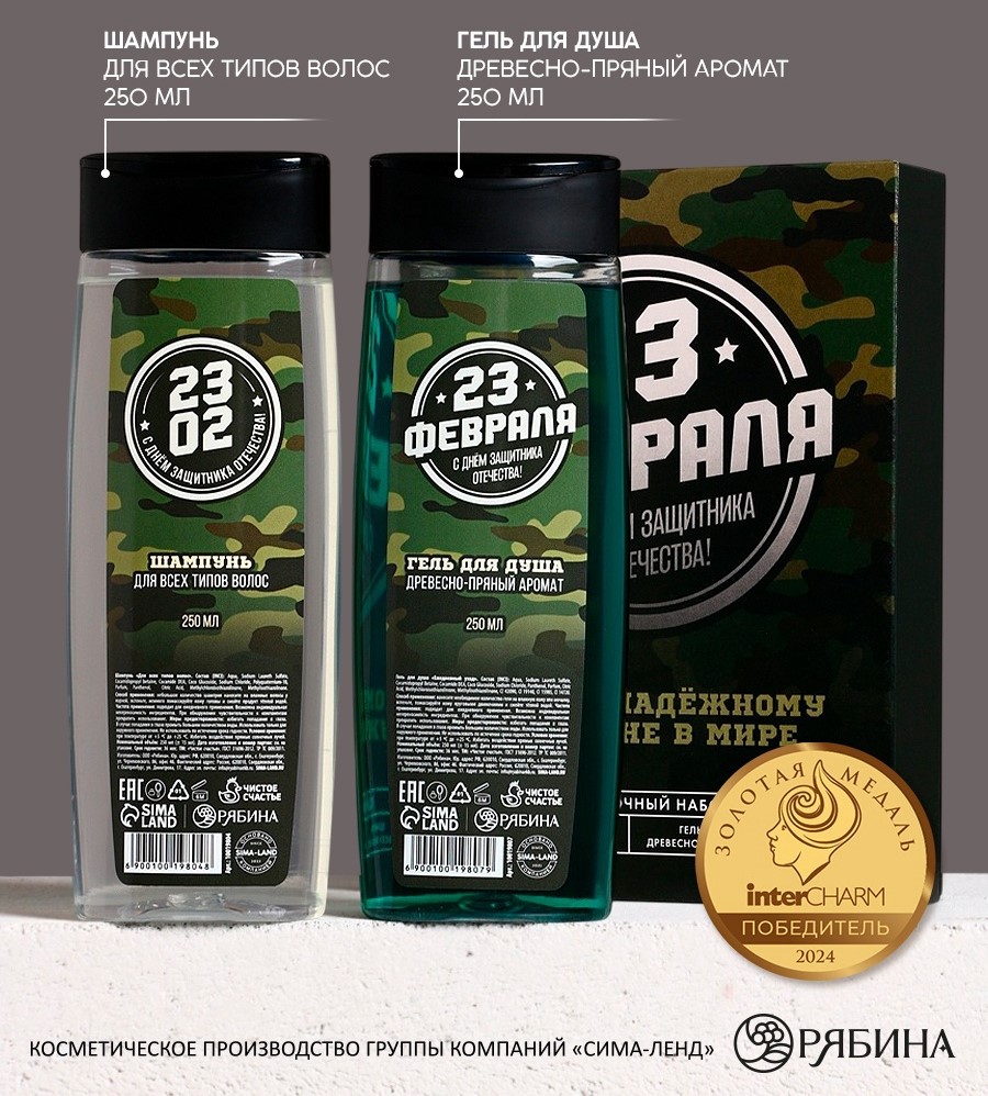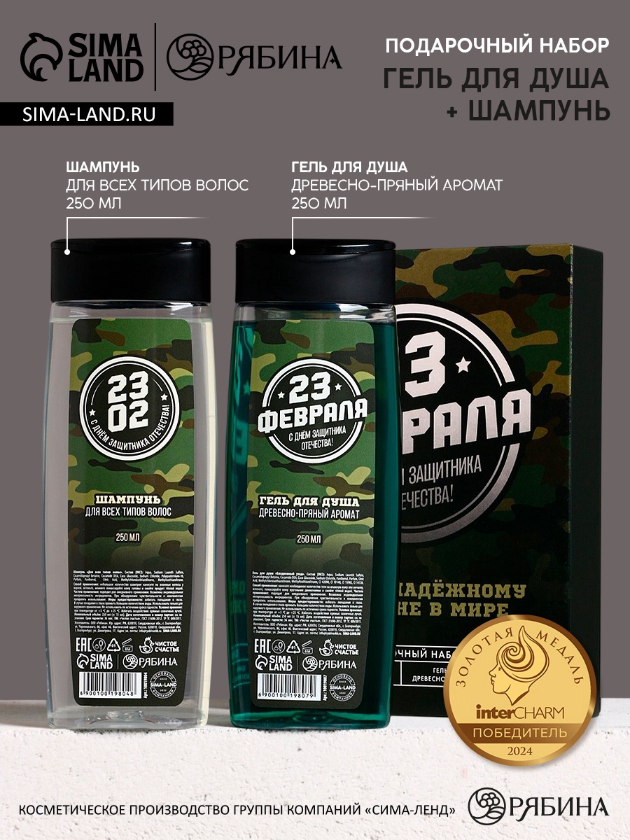 Набор муж С 23 февраля!” гель для душа и шампунь для волос, 2х200 мл 10107935
