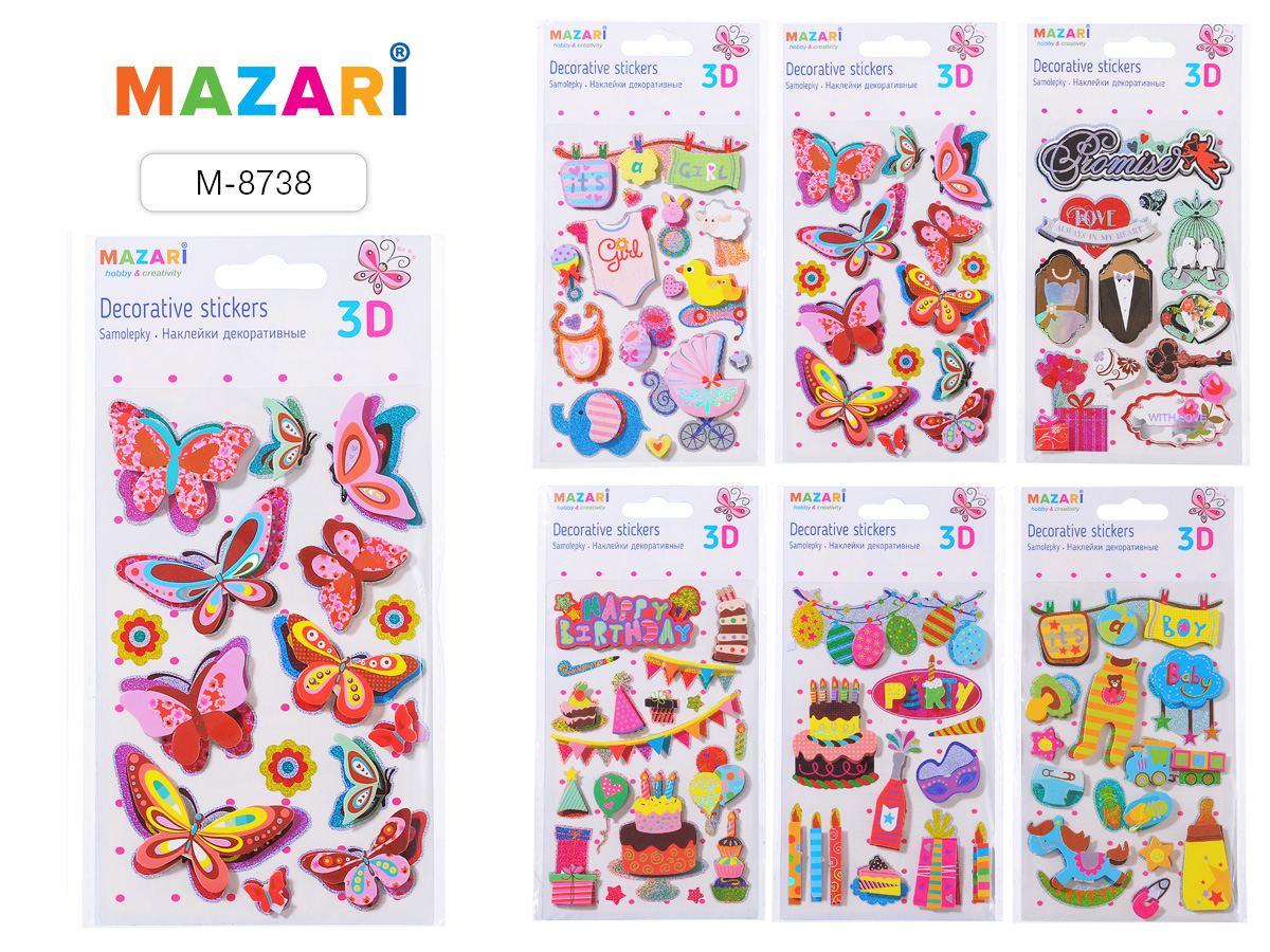 Наклейки декоративные 3D, 11.5 х 22.5 см 12 шт/уп М-8738