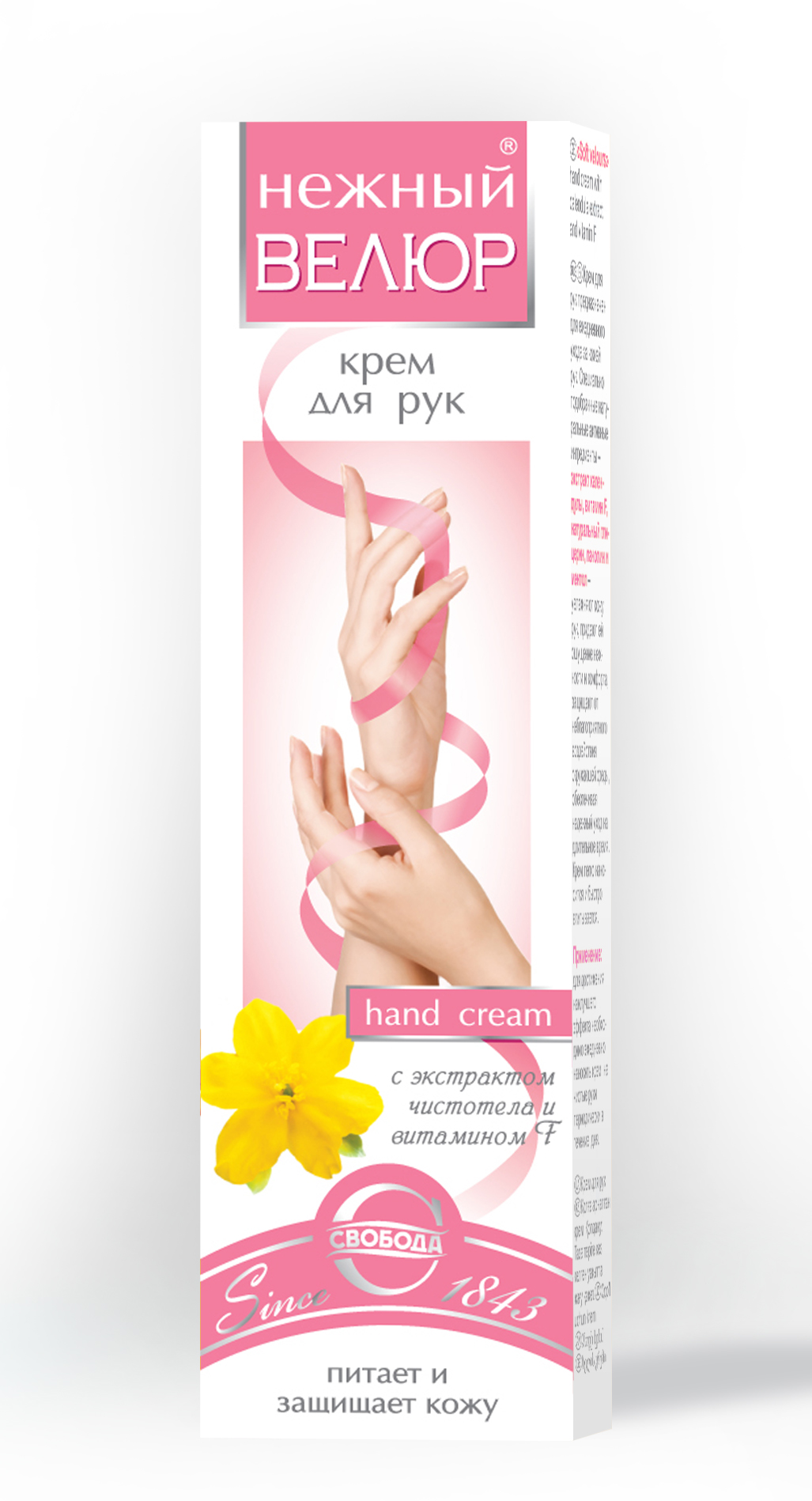 Крем для рук Нежный велюр содержит экстракт чистотела, витамин F, натуральный глицерин, ланолин, растительное масло, ментол.