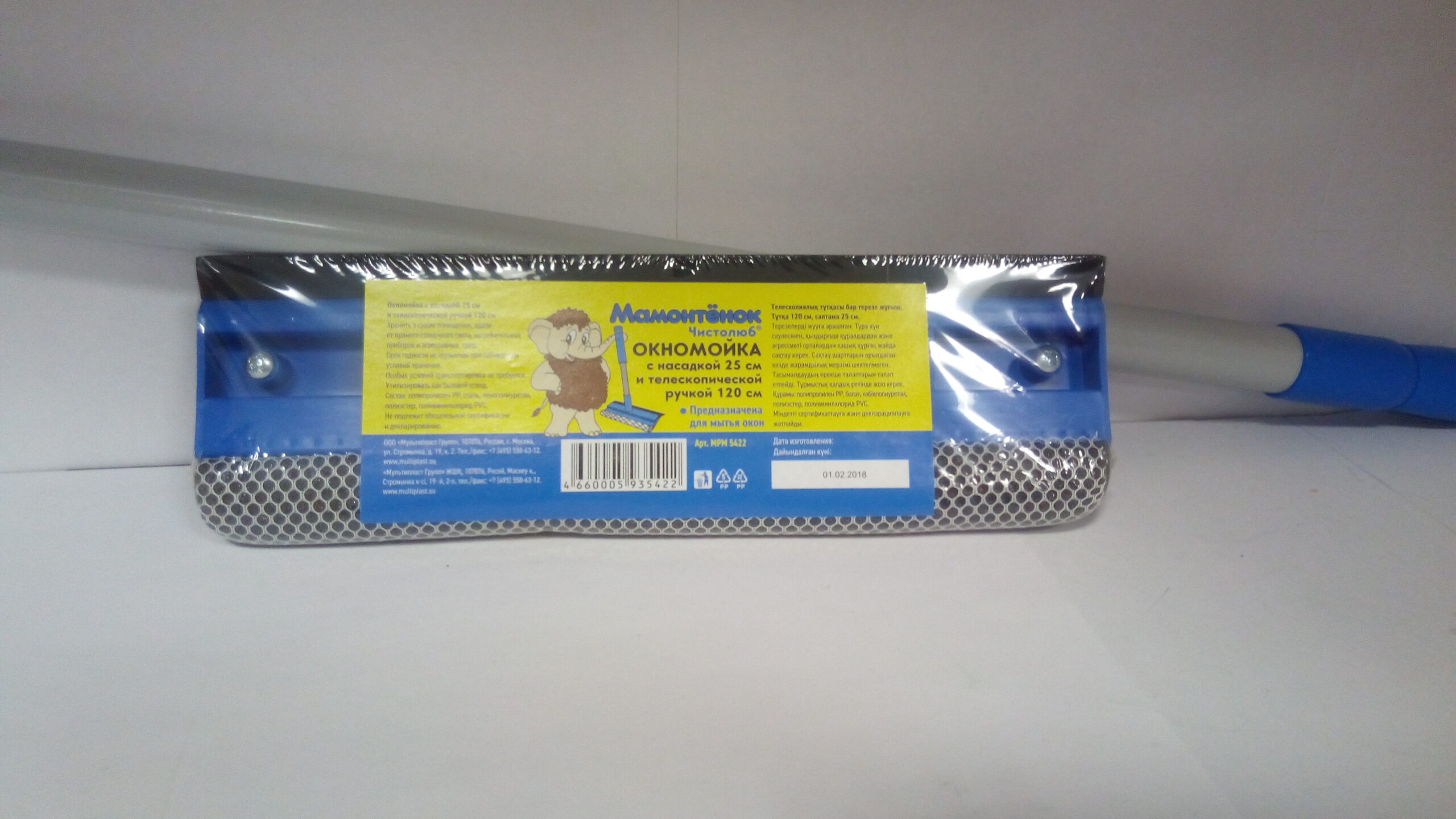 Окномойка 25 см с телескоп. ручкой, длина 120 см Голубая 50 шт/уп MPM5422