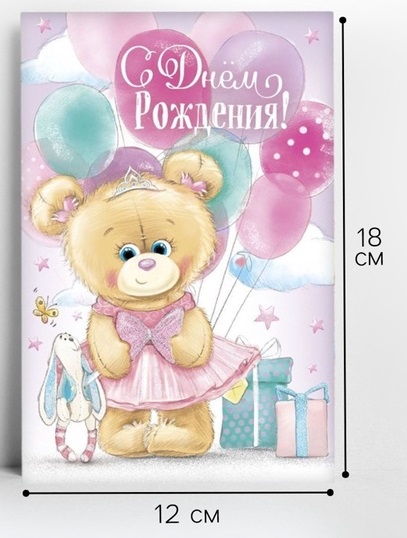 Открытка «С днём Рождения», глиттер, маленькая балерина, 12×18 см, 1818877