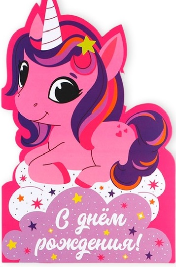 Открытка «С Днём Рождения», единорог 19×29 см, 10 шт/уп, 9157287