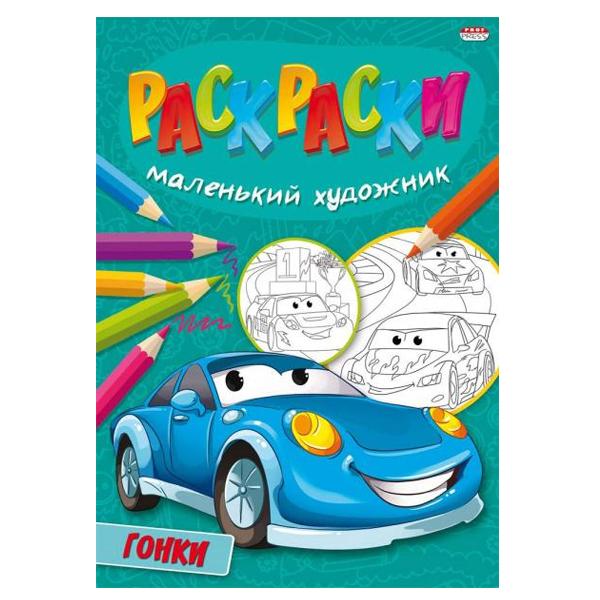Раскраска А4 ” Гонки ” маленький художник 8 л 50 шт/уп Р-5092