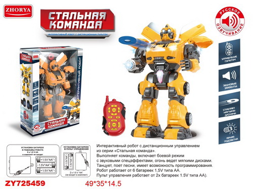 Робот с фунецией програмирования р.у. машина со светом,поет, стреляет дисками русск.яз № ZYB-B2739