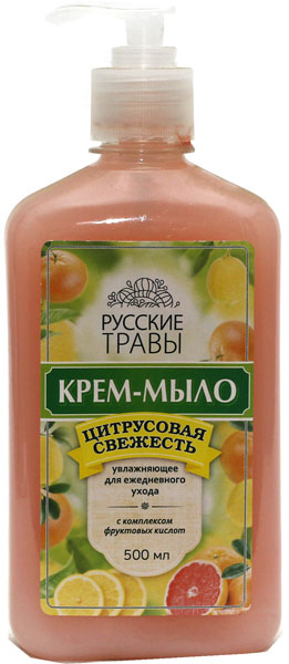 Русские травы 500 мл жидкое мыло с доз. Цитрусовая Свежесть 12 шт/уп