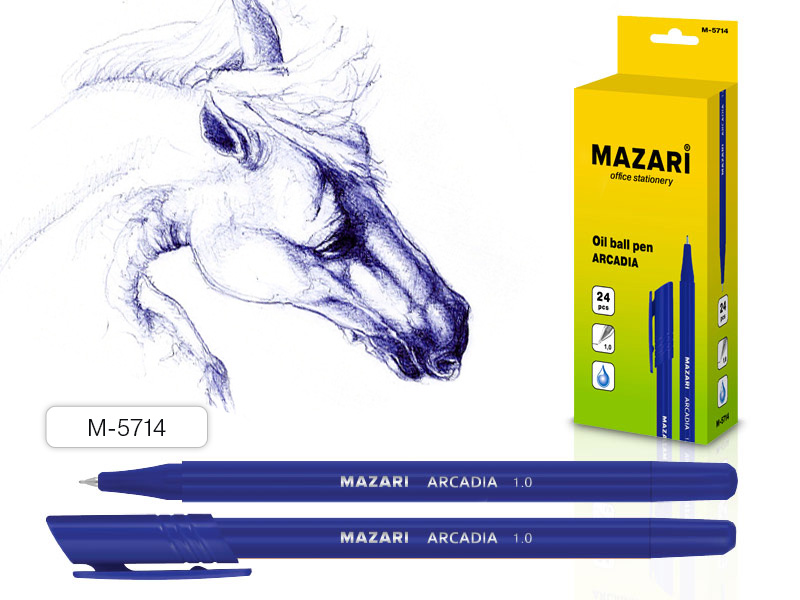 Ручка шар ARCADIA, СИНЯЯ, чернила на масляной основе, пулев пиш.узел 1.0мм,(24шт/к) 720 шт/уп М-5714