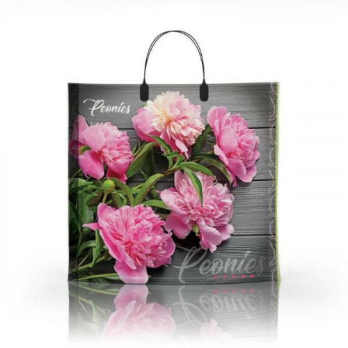 Сумка п/эт (пл. ручка) 360*340 Пионы 100 шт/уп