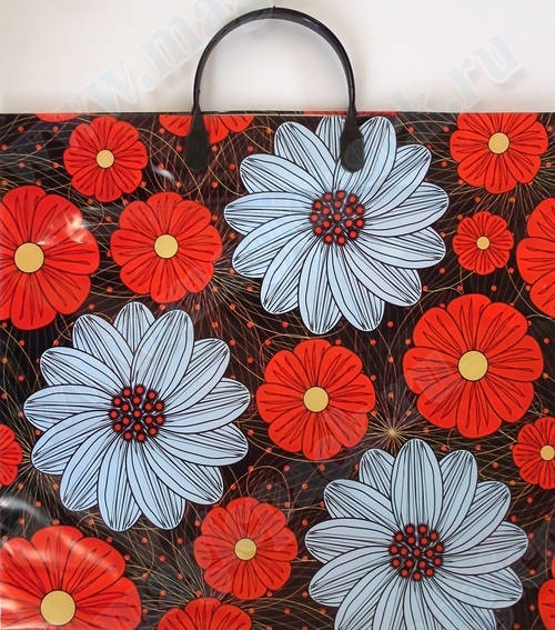 Сумка п/эт (пл. ручка) 380*350 Бело-красные Ромашки 100 шт/уп