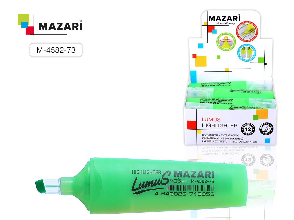 Текстовыделитель LUMUS, ЗЕЛЕНЫЙ, клиновидный пиш.узел 5 мм 12 шт/уп М-4582-73