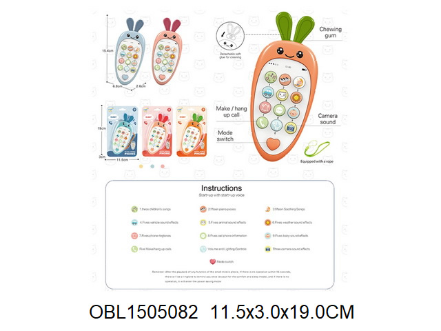 Телефон на батарейках “Морковка” звук+кнопки 188-5A1 /147149