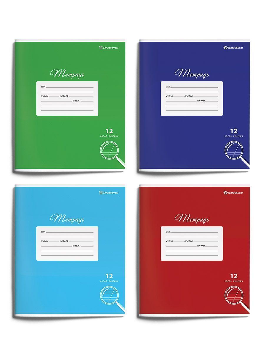 Тетрадь 12 л крупная клеткаОднотонная Школьная 4 диз 280 шт/уп Schoolformat ТШККО12-Ш