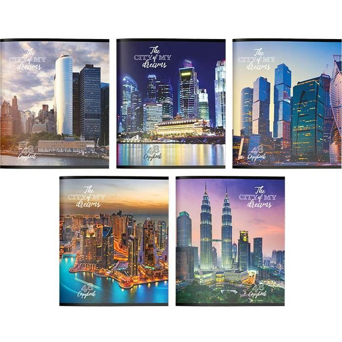 Тетрадь 48 л клетка Небоскребы ( 4 дизайнов ) А5 64 шт/уп Creativiki ТОК48КР-НБ