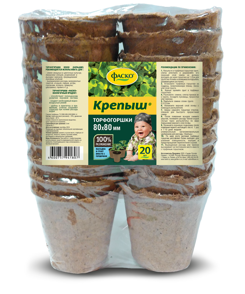 Торфгоршки Крепыш 80*80 круглые ( 1 шт=20 торфгоршков ) 15 шт/уп