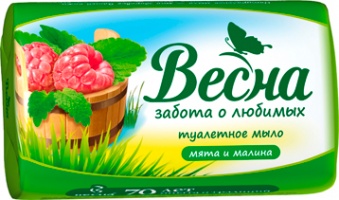 Классическое туалетное мыло Весна с мятой и малиной бережно очищает кожу.