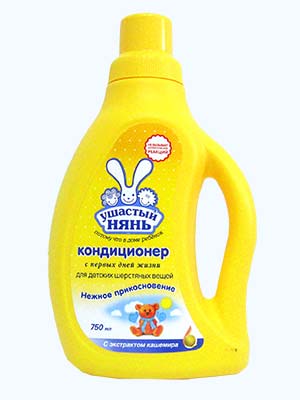 Бытовая химия для детей соединяет в себе два важных качества – она помогает сделать чистыми вещи для малыша и делает это безопасным для его здоровья способом. Детская бытовая химия смывается водой лучше, чем любая другая. Детская кожа очень чувствительная и нежная, не предназначенный для детской одежды порошок или кондиционер для белья может вызвать у крохи аллергию. А средства для мытья посуды вообще могут попасть в организм ребенка во время еды. Кондиционер Нежное прикосновение для шерстяных и полушерстяных вещей Ушастый Нянь подходит для стирки детского белья, в том числе новорожденных. Благодаря активному компоненту – экстракту кашемира – способствует сохранению первоначального вида изделия даже после многократных стирок. Удобно дозируется с помощью колпачка мерника. Особенности: придает мягкость вещам из шерсти и шерстяных тканей после стирки; обладает антистатическим эффектом.