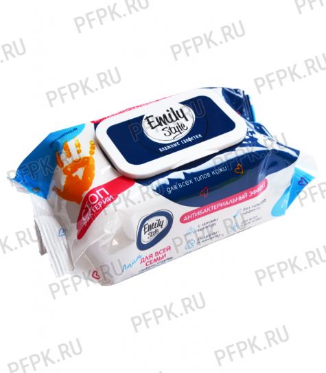 Эмили Style Lite 120 штук влаж салфетки Для Всей семьи Антибактериальные с клапаном 16 шт/уп 8178