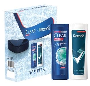 REXONA и CLEAR набор муж. Спорт коллекция (Шампунь 200мл+Гель д/душа 180мл) 6 шт/уп
