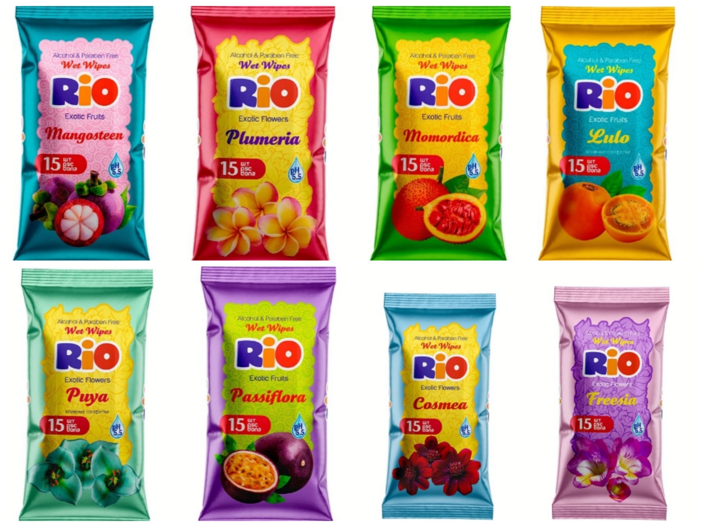 RIO Влажные салфетки Цветы 15 шт 144 шт/уп
